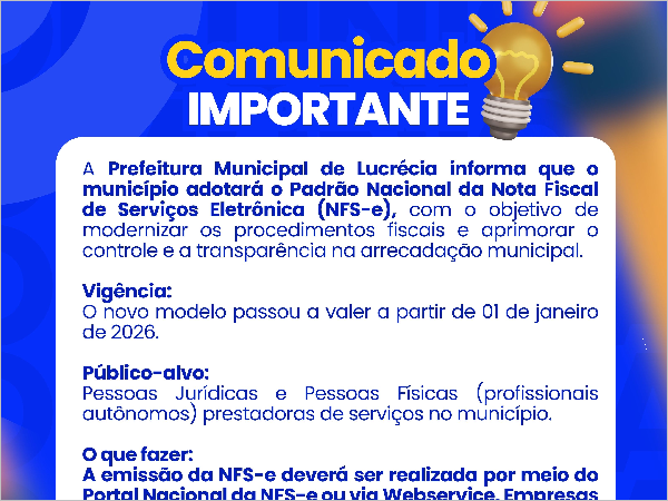 A Prefeitura de Lucrécia, por meio da Secretaria de Urbanismo, informa que está aberto o período de cadastramento para os vendedores ambulantes interessados em utilizar os espaços destinados ao comércio durante as festividades do município.